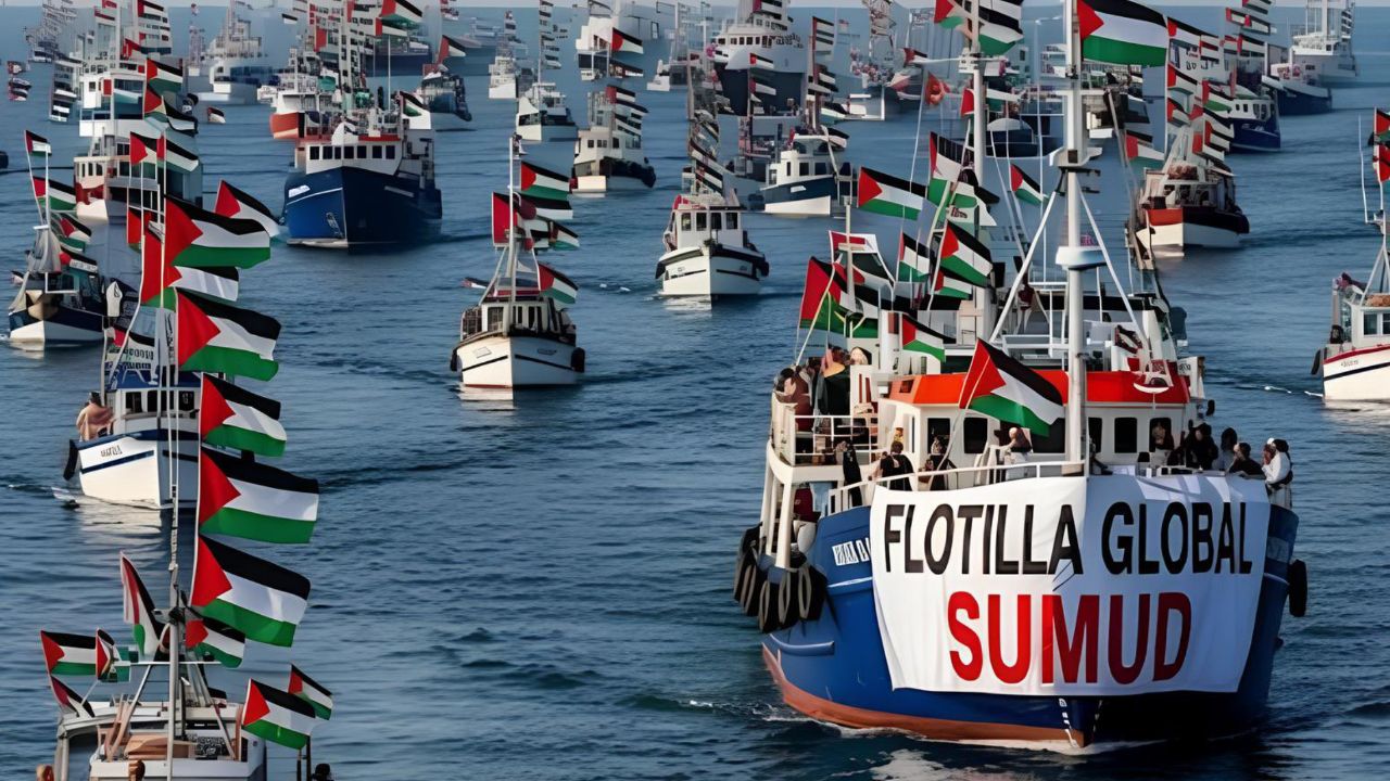 Küresel Sumud Filosu, Gazze’ye insani yardım ulaştırmak için Akdeniz’de ilerliyor. Türkiye de dahil olmak üzere 50’ye yakın ülkeden yüzlerce gönüllünün katıldığı filo, İsrail ablukasını kırmak ve bölgeye yardım ulaştırmak amacıyla yola çıktı.