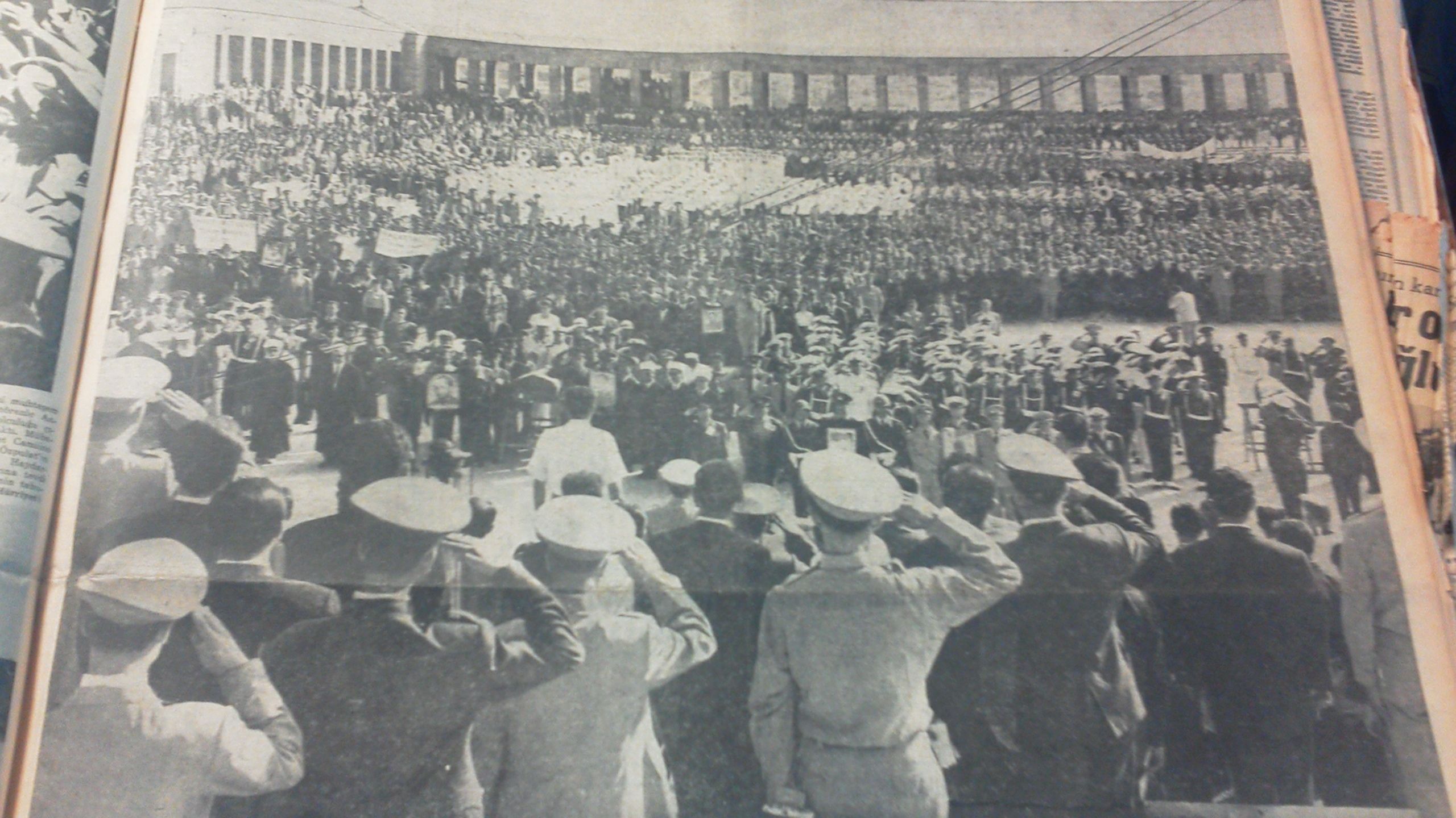 İstanbul''daki devlet erkânı, öğretim üyeleri, subaylar ve binlerce İstanbullu, iki protestocu öğrenciye veda için Beyazıt Meydanı''nı doldurmuştur. Dev bir Atatürk resminin asıldığı tarihî kapıdan Atatürk heykelinin yanındaki iki katafalkta yatan öğrencilere bakan kalabalık "Olur mu böyle olur mu, kardeş kardeşi vurur mu" marşını söylemektedir. Yanında generallerle ağır ağır kürsüye çıkan rektör Sıddık Sami Onar ağlamaklıdır: