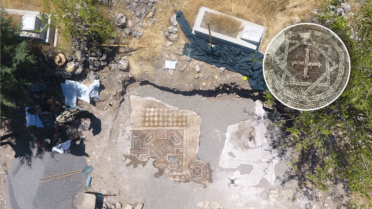 Bu kapsamda yapılan kurtarma kazısında Geç Roma-Erken Bizans dönemine ait olduğu değerlendirilen 35 metrekarelik mozaik gün ışığına çıkarıldı.