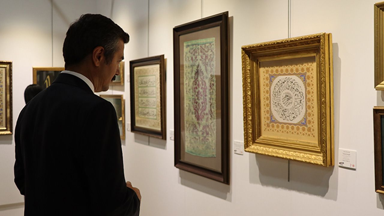 Hayırsever iş adamlarının koleksiyonunu bağışlamasıyla meydana getirilen sergide; Hasan Çelebi’ye ait altın levhayla yazılmış bir eser ile Sultan III. Selim’e ve Sultan II. Abdülhamid’e ait beratlar dikkat çekiyor.