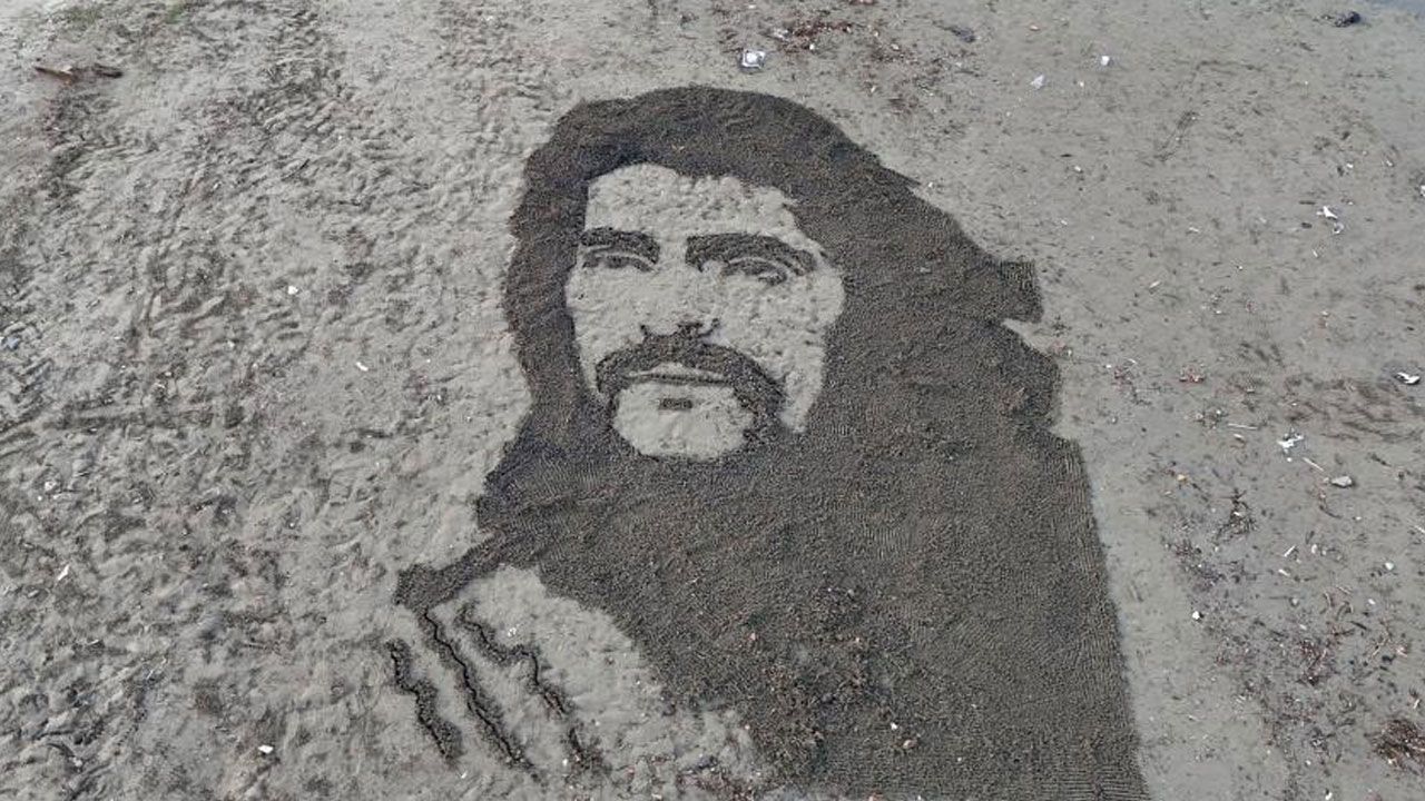 Antalya'nın Alanya ilçesinde yaşayan 58 yaşındaki İranlı heykeltıraş ve ressam Farajollah Bagheri, kum sanatıyla Türk müziğinin unutulmaz ismi merhum Barış Manço'yu Galip Dere Plajı'nın kumlarına resmetti.