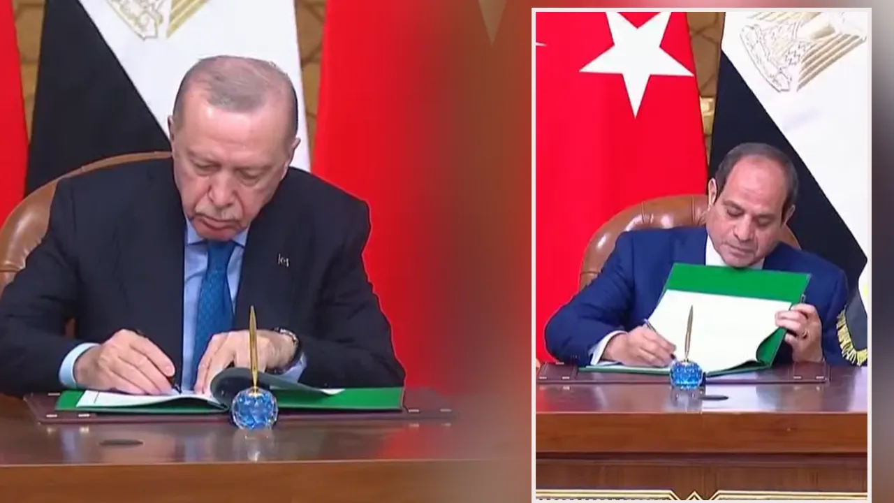 Orta Doğu turu kapsamında diplomatik temaslarını sürdüren Cumhurbaşkanı Erdoğan ve Mısır Cumhurbaşkanı Abdülfettah Es-Sisi baş başa görüşmelerinin ardından iki ülke arasındaki anlaşmaların imza törenine katıldı. İki lider Kahire’de önemli anlaşmalara imza attı.