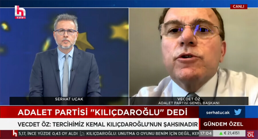 Seçimlerin ilk turunda Cumhurbaşkanı Recep Tayyip Erdoğan yüzde 49,32; CHP Genel Başkanı Kemal Kılıçdaroğlu yüzde 45,01; Sinan Oğan ise 5,26 oy aldı. Bu sonuca göre Cumhurbaşkanı adayları %50 barajını aşamadığı için seçim ikinci tura kaldı. Ata İttifakı'nın seçimlerde hangi tarafa destek vereceği merak konusuydu. İttifak bileşenlerinden her gün farklı açıklamalar geliyor. Daha önce Kemal Kılıçdaroğlu'na destek olacaklarını duyuran ittifak üyelerinden Adalet Partisi’nin genel başkanı Vecdet Öz, Halk TV canlı yayınında çarpıcı açıklamalarda bulundu.