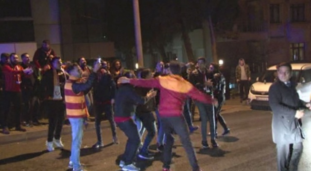 1-1'lik Fenerbahçe derbi maçı sonrası Florya Metin Oktay Tesisleri'ne geçen Galatasaray kafilesini bir grup taraftar karşıladı.