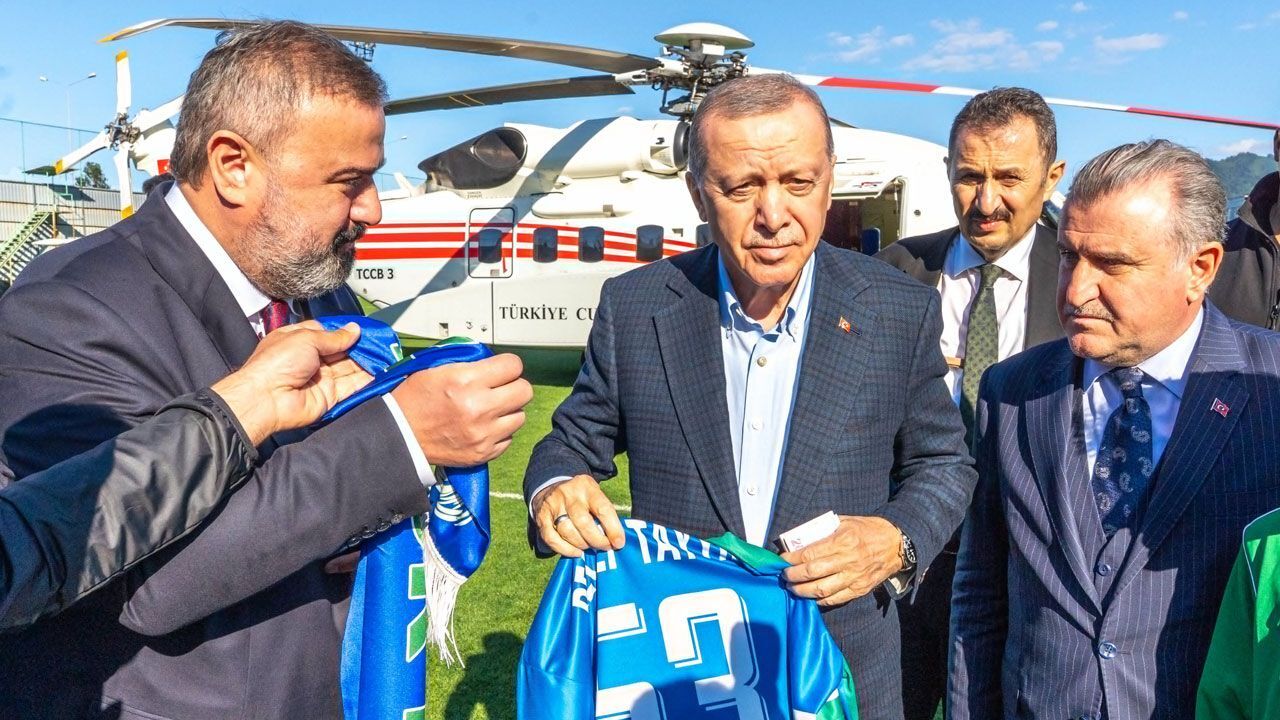 Erdoğan, Ayder Yaylası'ndaki incelemelerinin ardından, helikopterle Çaykur Rizespor'un tesislerine geldi.