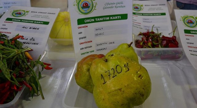 Biga'da bu yıl 11'incisi düzenlenen Gıda, Tarım, Hayvancılık ve Teknolojileri Fuarı'nda sergilenen 1 kilogram 720 gram ağırlığındaki deveci armudu, görenlerin ilgisini çekiyor. Karacaali köyünde armut ağaçları bulunan Seyfettin Çakır'ın yetiştirdiği 1 kilogram 720 gramlık armut, fuardaki ziraat odası standında sergilendi. Çakır, AA muhabirine yaptığı açıklamada, Bursa'dan aldığı aşılı armut fidanlarını 5 yıl önce arazisine diktiğini söyledi. Bir kilogramlık armut yetiştirmek hedefiyle yola çıktığını belirten Çakır, "Bahçemde 558 ağaç deveci armudu var. İyi bir bakım ile armutlar ceviz büyüklüğüne geldiğinde seyrelttim. Doğal hayvan gübresi koyarak bu noktaya getirebildim. Allah nasip etti 1 kilo 720 gramı bulduk. Diğer armutlar ise 1 kilo 100 gram ve 700 gram aralığında." diye konuştu.