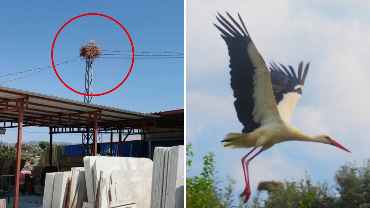 Mermer atölyesinin içindeki bir telefon direğine yuva kurarak bölgeyi sahiplenen leylekler, Karaova ve Değirmendere’deki bahçelerde beslenerek hayatlarını sürdürdü.