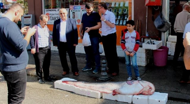 Devasa yayın balığı, sabah saatlerinde Kızılırmak Deltası’nda bir gölde balıkçılar tarafında yakalandı. Daha sonra balıkçı dükkanına getirilen yayın balığı tezgaha sığmadığı için yoldaki balık kutularının üstüne koyuldu. 183 santim uzunluğunda, 152 kilo ağırlığındaki yayın balığı, yoldan geçen vatandaşların oldukça ilgisini çekti. Daha önce canlı olarak bu büyüklükte bir yayın balığı görmediğini söyleyen vatandaşlar şaşkınlıklarını gizleyemedi. Bazı vatandaşlar ise cep telefonlarına sarılarak yayın balığının fotoğrafını çekti.