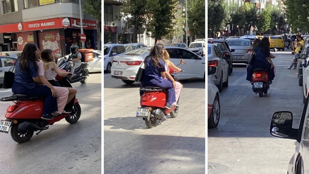 Eskişehir'de kask takmadan aynı motosiklete binen 3 kadın cep telefonuyla görüntülenirken, kadınların motosiklet ile Çarşı Polis Merkezi Amirliği'nin önünden geçerek yollarına devam etmeleri de dikkat çekti.