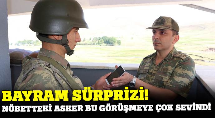 Komutan kulede nöbet tutan askerin annesiyle telefonda konuşarak bayramını kutlarken, Mehmetçiğin de annesiyle görüşmesini sağladı.
