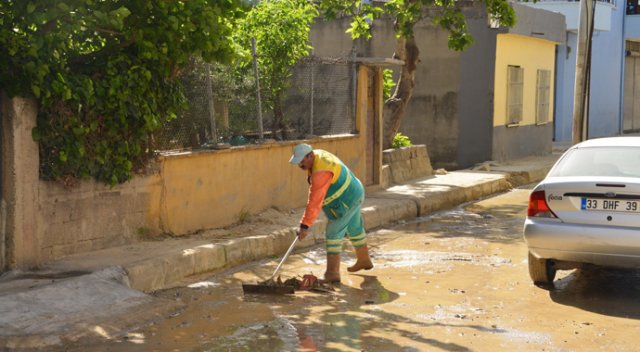 Akdeniz Belediyesi, Çevre Koruma ve Kontrol Müdürlüğü ile Park ve Bahçeler Müdürlüğü ekiplerinin ortak çalışmasıyla bir hafta önce yaşanan etkili yağışla birlikte mahallelerde biriken mil ve çamur atıklarını temizledi.