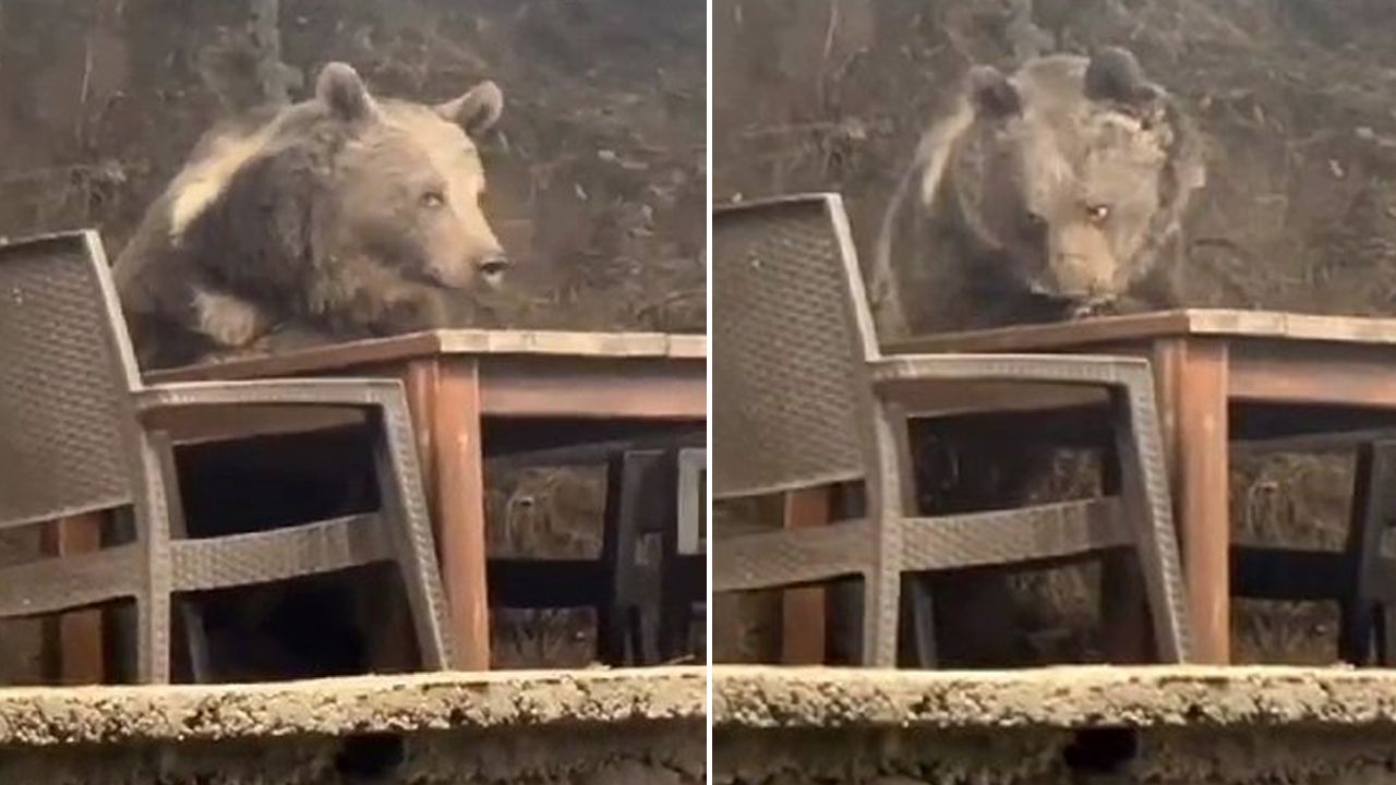 Ankara'da lokantaya giren ayı, masaya oturup servis bekledi! Komik anlar kamerada
