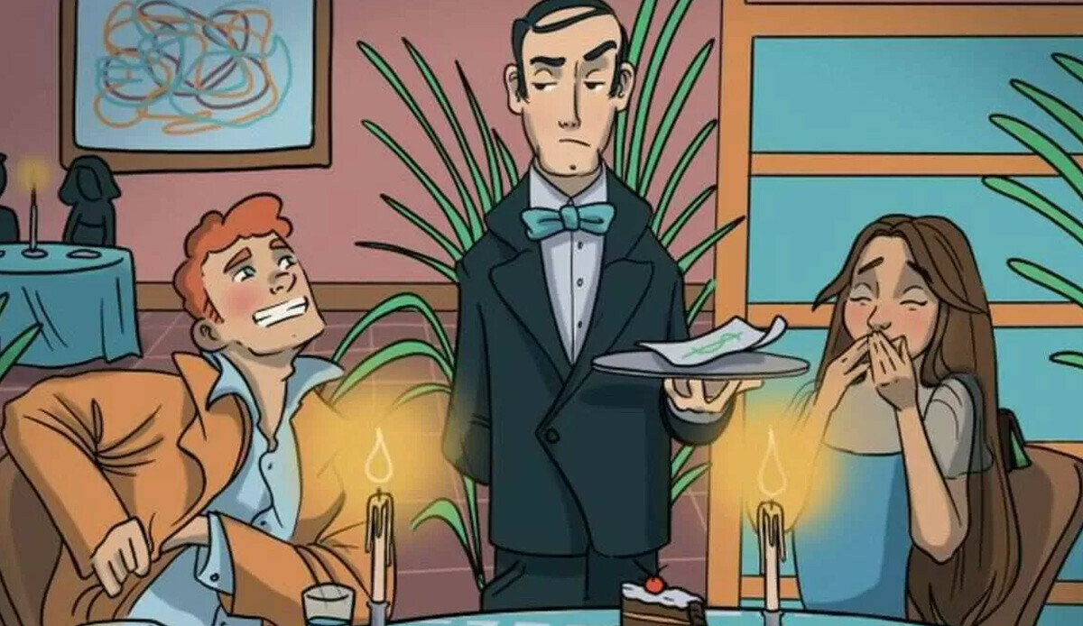 Bu optik illüzyonda ise bir erkek ve bir kadın restoranda randevulaşıyor. Ancak hesabın geldiği sırada adam cüzdanını kaybettiğini fark ediyor. Garson ise adama şüpheyle bakıyor. Adamın cüzdanı restoranın içinde bir yerde saklı, ama nerede?