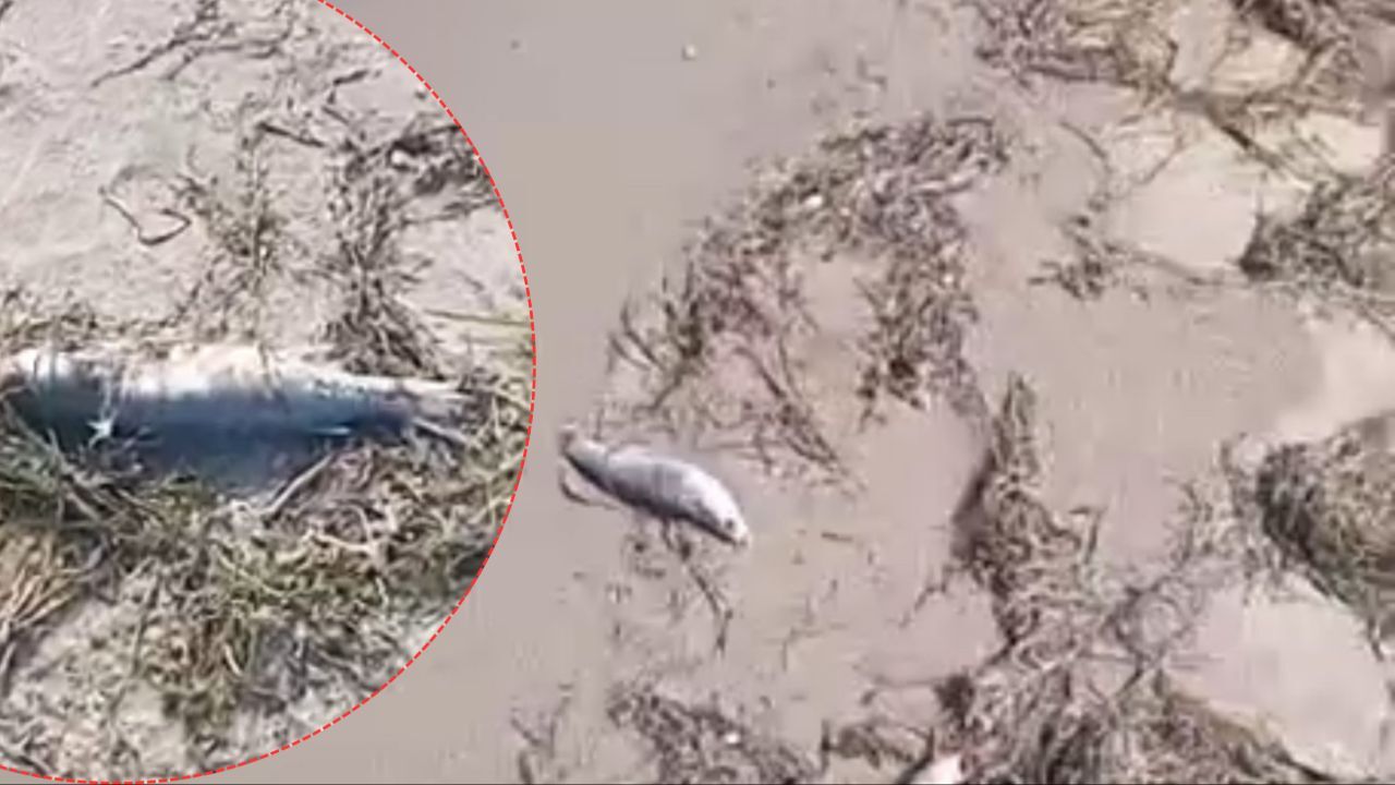 Görüntülerde, kumsalda çok sayıda ölü balığın yer aldığı görülüyor.