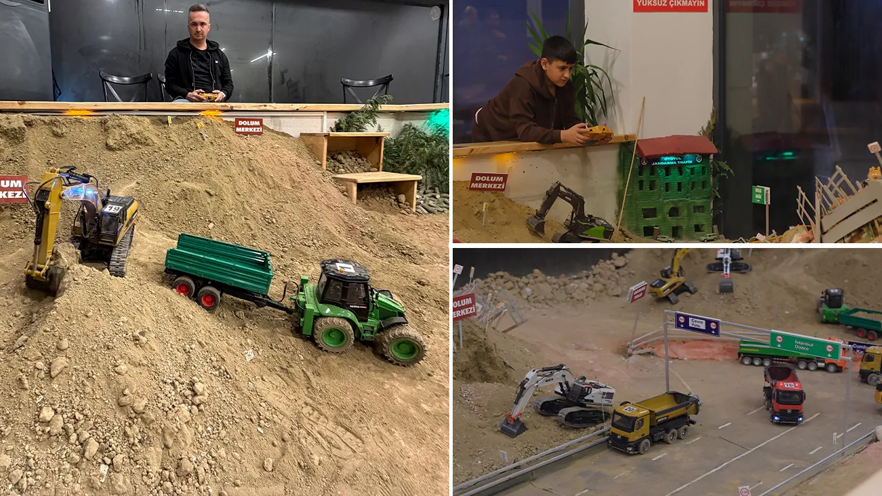 Yediden yetmişe her yaş grubundan insanın keyifli vakit geçirdiği kafede oyuncak vinç, kamyon, dozer, traktör ve tır gibi iş makineleri bulunuyor. Uzaktan kumandayla kontrol edilen RC araçlar ile yük taşınabiliyor, kazı yapılabiliyor, tır ve kamyon kasalarına vinçlerle yük bırakılabiliyor.