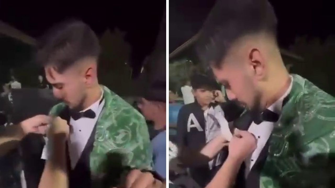 Salonda kısa süreli şaşkınlık yaşanırken, davetliler o anları cep telefonlarıyla kayda aldı.