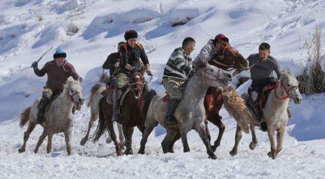 Van’ın Erciş ilçesinde yaşayan Kırgız Türkleri, Dünya Göçebe Oyunları’nın dördüncüsünün Türkiye’nin ev sahipliğinde yapılacağının duyurulmasının ardından hazırlıklarına başladı. Afganistan’ın Pamir Yaylası’ndan 37 yıl önce göç ederek Ulupamir Mahallesi’ne yerleşen Kırgızlar, seyredenlere tam bir savaş oyunu havası veren kökbörü (oğlak kapmaca) müsabakalarında Türkiye’yi en iyi şekilde temsil etmek istiyor. Sporcular, atlarının dayanıklılıklarını artırmak için kış aylarında da köy meydanına gelerek zorlu antrenmanlarına devam ediyor. Dışarıdan bakıldığından çok kolay bir oyun gibi görünse de kökbörünün yorucu ve tehlikeli bir spor olduğunu ifade eden binici Rıdvan Ufuk “Zaman zaman atlardan düşüyoruz ve atlar üzerimizden geçiyor. Burada ayağı, eli kırılanlar oluyor ama iyileştikten sonra yine oyuna devam ediyor” şeklinde konuştu.