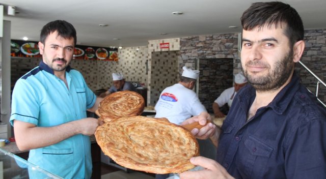 “Un, maya ve su karışımından elde edilen hamur, merdane kullanmadan ustanın maharetiyle kol üzerinde çevrilerek açılıyor. Daha sonra büyükçe açılan yufka, üzerine tahin dökülerek uzun rulo haline getiriliyor. Parçalara ayrılan hamur, pide şekline getirildikten sonra fırında 10 dakika pişirilip vatandaşa sunuluyor.”