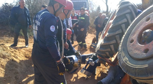 Denizli’de devrilen traktörün altında kalan sürücü hayatını kaybetti.