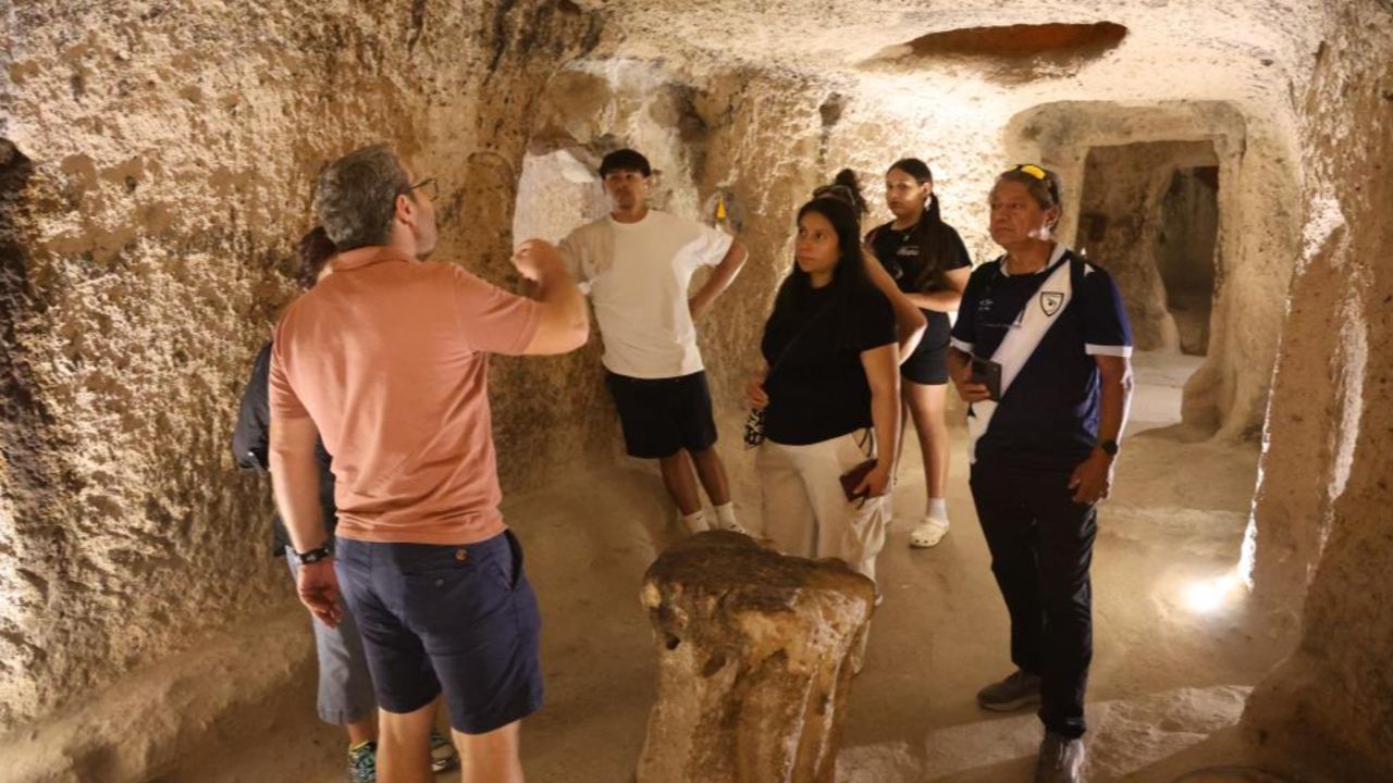 Guatemala'dan gelen turist Martinez de Kapadokya'ya ilk kez geldiklerini belirterek, "Buraları görünce çok şaşırdık. Her şey çok güzel ve çok tarih var. Ancak dışarısı çok sıcak, içerisi çok serin. Tam istediğimiz sıcaklıkta" ifadelerini kullandı.