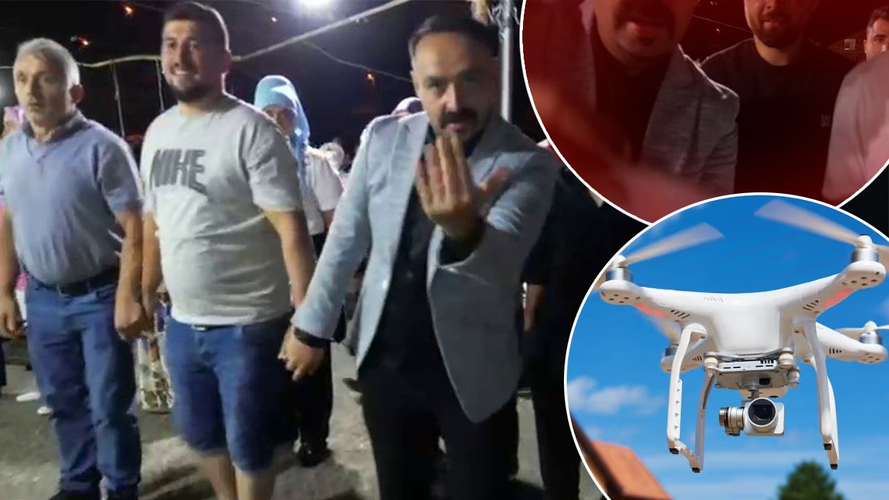 Düğüne dron operatörü arkadaşı ile birlikte giden Aydın, ağabeyinden drona para takmasını söyledi.