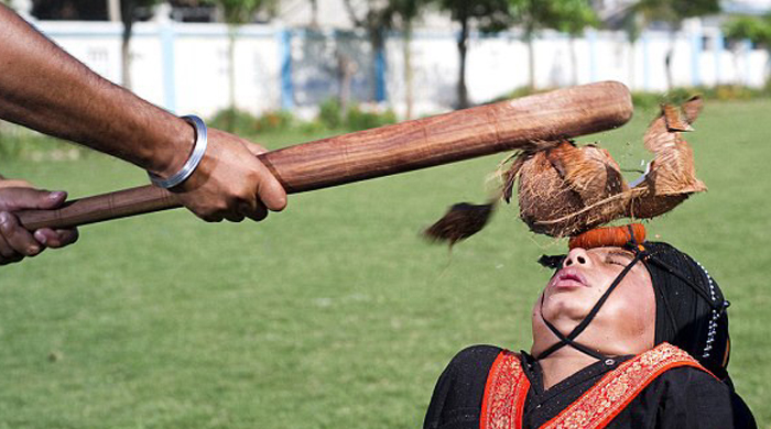 Hindistan'da 10 yaşındaki Manpreet Singh'in kafasında hindistan cevizi kırılıyor, bana mısın demiyor. Singh, dünyada 10 yaşındaki en dayanıklı çocuk.