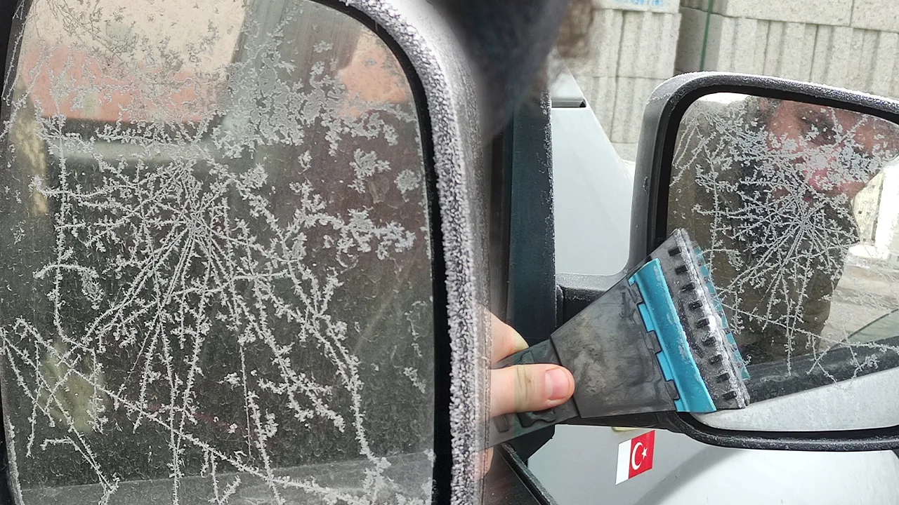 Sürücüler, araçlarını çalıştırmakta güçlük çekerken, bazı vatandaşlar camları kazıyarak çözüm bulmaya çalıştı.