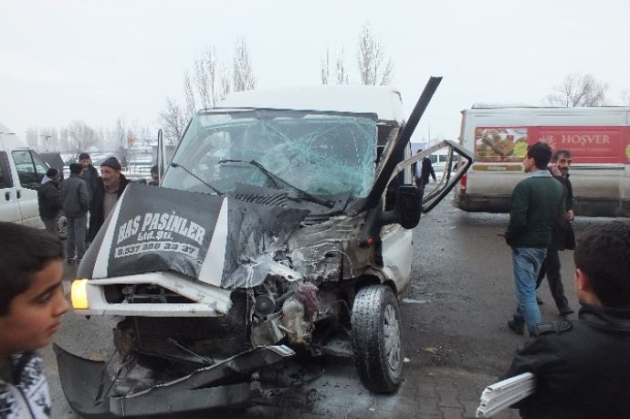 Erzurum'un Pasinler ilçesinde yolcu otobüsü, öğrenci servisine çarptı. Kazada 8 kişi yaralandı.