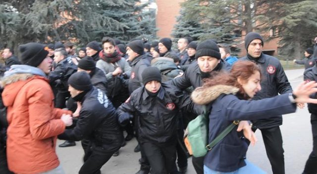 Eskişehir’de bulunan Anadolu Üniversitesi’nde, öğretim üyelerinin ihraç edilmesini protesto eden grup ile özel güvenlik görevlileri arasında arbede yaşandı.