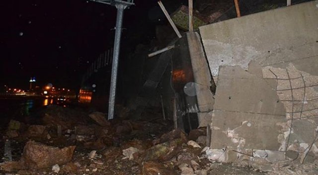 Kocaeli'nin Gölcük İlçesi'nde D-130 karayolunun kenarında bulunan istinat duvarı çöktü. Kaya parçaları yola dökülürken, ulaşım tek şeritten sağlandı.
