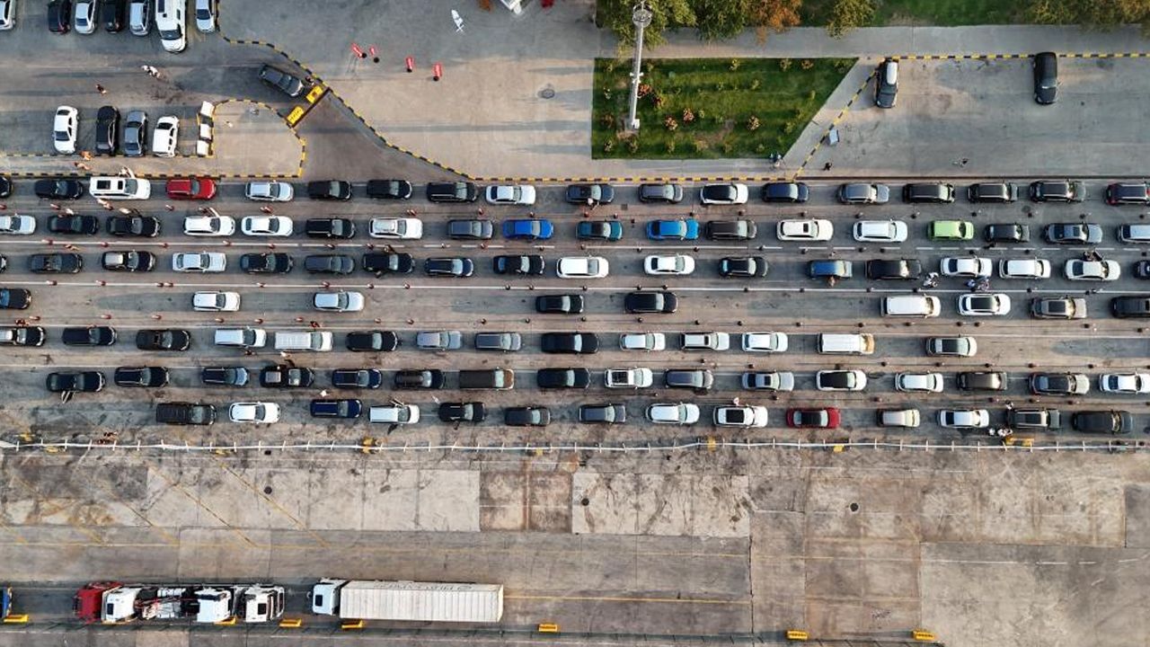 Kapıkule Sınır Kapısı'nda kilometrelerce araç kuyruğu oluştuğu görüldü.