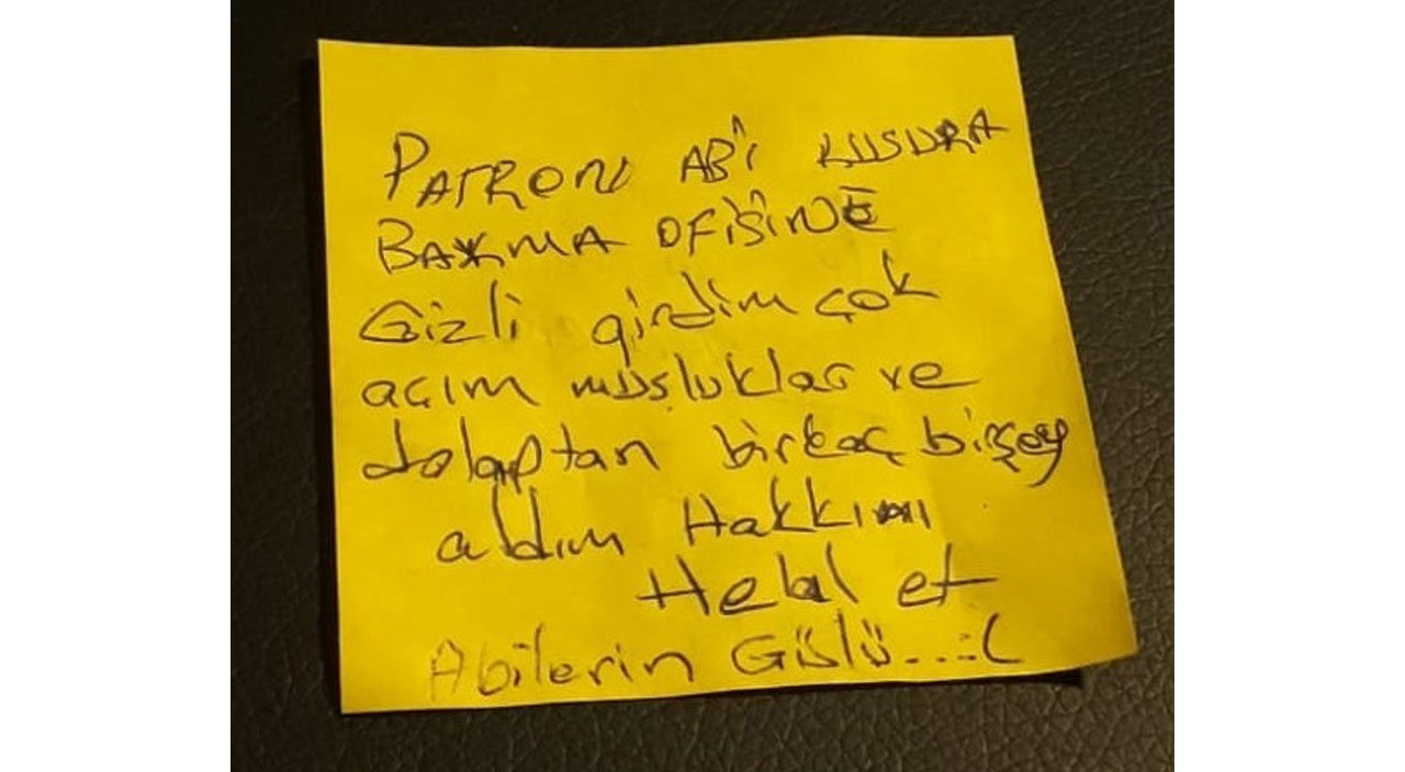 "Hakkını helal et ağabeylerin gülü" notunu bırakan hırsıza mağdur patrondan iş teklifi