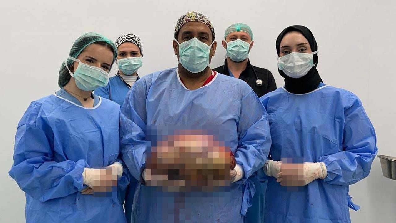 Bursa'da karın bölgesindeki şişlik nedeniyle hastaneye başvuran 40'lı yaşlardaki kadın hastanın yapılan tetkiklerinde karın içinde yaklaşık 10 kilogram ağırlığında büyük bir kitle tespit edildi. Kitle hastanede gerçekleştirilen başarılı ameliyatla patlatılmadan çıkarıldı.