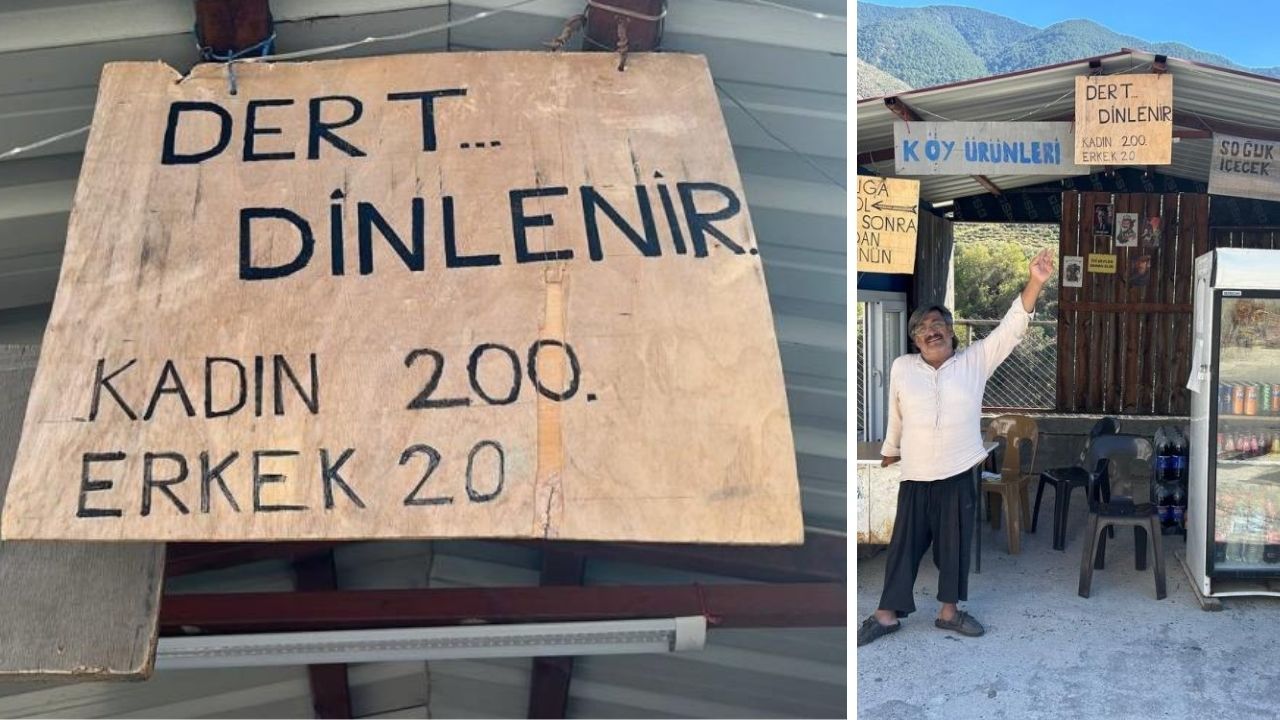 Hatay'ın Arsuz ilçesinde iş yerine astığı "Dert dinlenir; kadın 200 TL, erkek 20 TL" yazısıyla vatandaşlar gülümseten esnaf, mahallenin bir nevi "psikoloğu" oldu. Vatandaşların dikkatini çekmek için bu yazıyı astığını ifade eden iş yeri sahibi, tabelanın ilgi odağı olduğunu ve birçok vatandaşın dert anlatmaya geldiğini söyledi.
