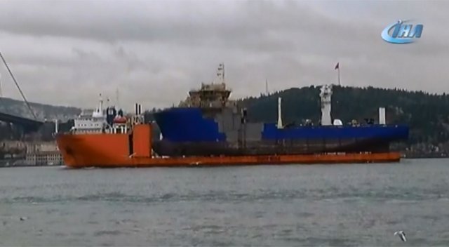 İstanbul Boğazı’ndan dev bir nakliye gemisi geçti. Kanada’nın Quebec şehrine gittiği öğrenilen Curaçao bandıralı, 173 metre uzunluğunda 40.06 metre genişliğinde “Transshelf” isimli dev nakliye gemisinin üzerinde yine bir nakliye gemisi taşıması ilginç görüntü oluşturdu. Ortaköy sahilindeki vatandaşlar 15 Temmuz Şehitler Köprüsü’nün altından geçen dev gemiyle özçekim yapmak için adeta birbirleriyle yarıştı.