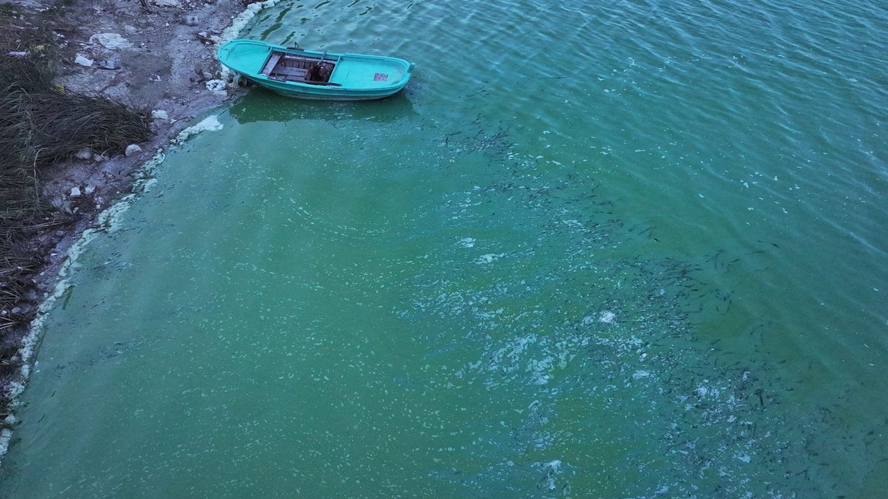Baraj gölünün özellikle kıyı kesimlerinde köpüklerin yer alması dikkati çekti. Suda fark edilen renk değişimi dronla havadan görüntülendi.