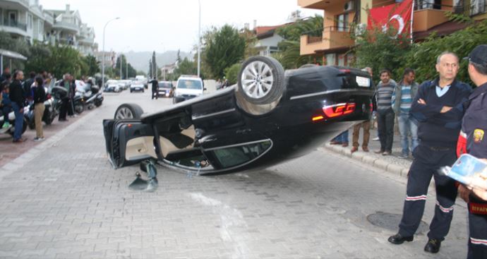 Kaza yapan otomobillerden biri iki tekerlek üzerinde 50 metre gittikten sonra takla atarak durabildi. Her iki sürücüde şans eseri kazayı yara almadan atlattı.Kaza, Eski Datça Yolu üzerinde saat 16.00 sıralarında meydana geldi. Seçil Y'nin (35) kullandığı 48 SP 078 plakalı otomobil cadde üzerinde hareket halindeyken üç yol kavşağından çıkış yapmaya hazırlanan Seçil G'nin (34) kullandığı 48 P 0493 plakalı araca çarptı. Çarpmanın hızıyla yan dönen araç iki lastik üzerinde 50 metre kadar gittikten sonra takla atarak durabildi. Otomobilin 2 lastik üzerinde gittiğini gören vatandaşlar şaşkınlık yaşadı. Kazayı görenler 112 ve polise haber vererek kadın sürücüyü takla atan araçtan çıkararak kurtardı. Şans eseri her iki sürücünün de yara almadan atlattığı kazada ,takla atan aracın sürücüsü Seçil Y'nin soğukkanlı bir şekilde takla atan otomobilinin fotoğrafını gülümseyerek çekmesi gözlerden kaçmadı.Kaza nedeni ile Eski Datça Yolu bir saat trafiğe kapandı, araçların yoldan kaldırılmasıyla yol tekrar trafiğe açıldı. Kaza ile ilgili soruşturma başlatıldı.