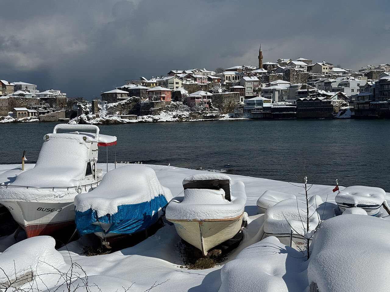 Kumsallar ve balıkçı tekneleri de beyaz örtüyle kaplandı.