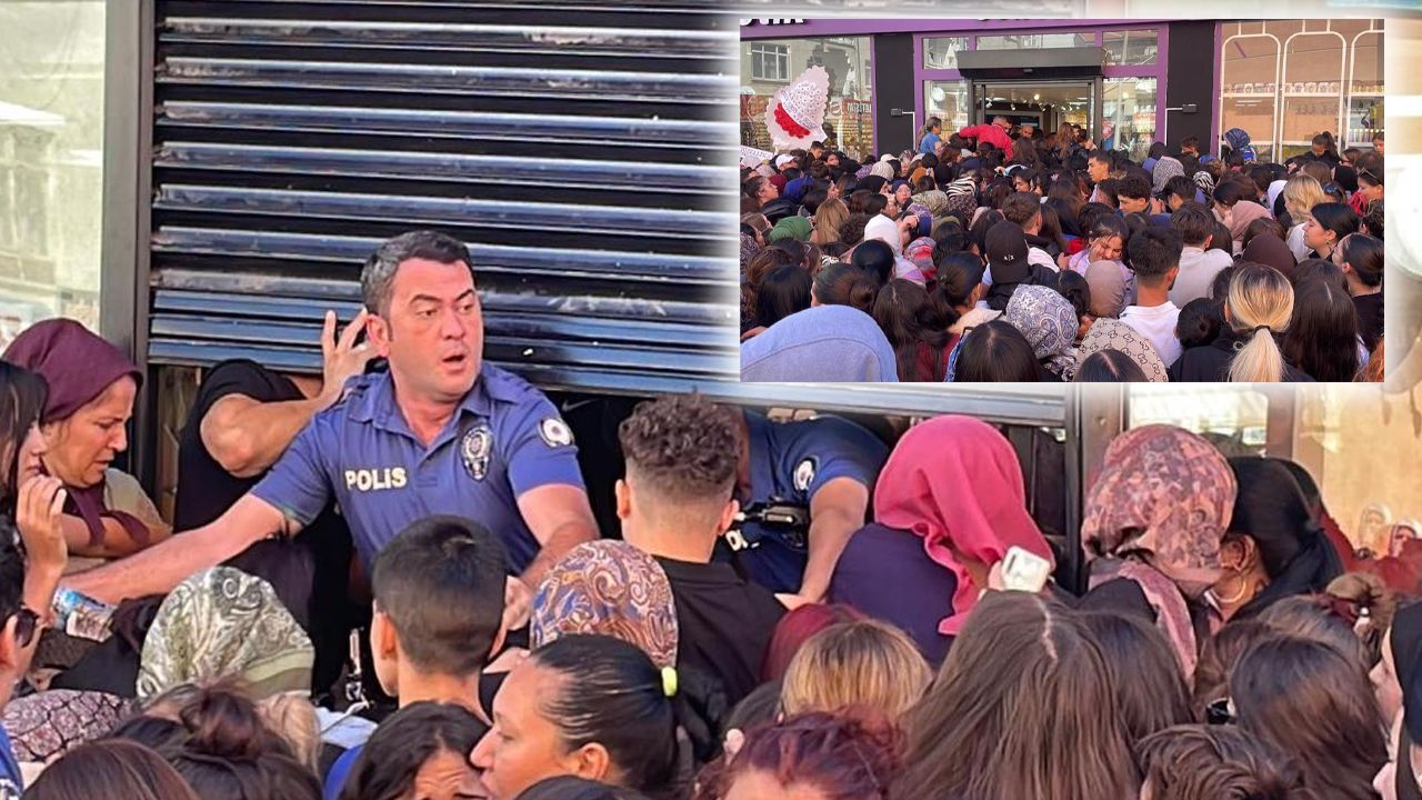 Karaman'da bir takı ve kozmetik ürün satışı yapan mağazanın açılışı izdihama neden oldu. İndirimden faydalanmak isteyenler birbiriyle yarışırken, görevliler polisten yardım istedi. Duruma müdahale eden polisler ezilme tehlikesi geçirdi.