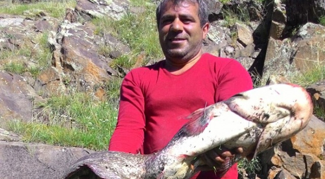 Amatör balıkçı, Kars Çayında oltayla 30 kiloluk yayın yakaladı.