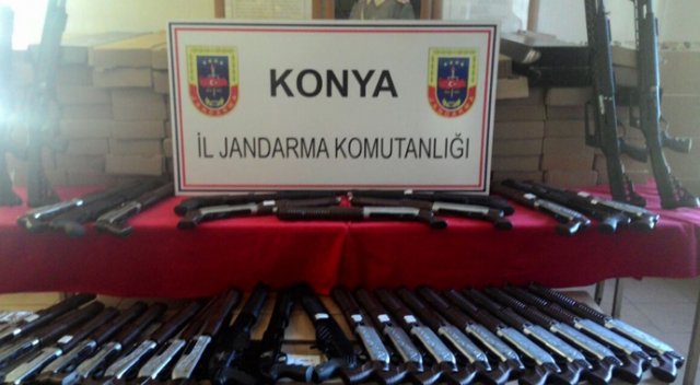 Edinilen bilgiye göre, Konya İl Jandarma Komutanlığı ekipleri, Beyşehir Konya karayolu üzerinde maliye ekipleriyle yaptığı yol kontrolünde iki ayrı kargo şirketine ait nakil araçlarını durdurarak arama yaptı. Yapılan aramada, Beyşehir ilçesine bağlı Üzümlü Mahallesi’nde ikamet eden M.K.’ye ait olduğu belirlenen ve üretim izni olmadan satışı yapıldığı tespit edilen 5 adet kısa namlulu, 16 adet uzun namlulu olmak üzere toplam 23 adet av tüfeği ele geçirilerek muhafaza altına alındı. Aynı olayla ilgili olarak M.K.’nin Beyşehir-Üzümlü’de bulunan evinde ve eklentilerinde yapılan aramada ise 152 adet av tüfeği ele geçirildi.