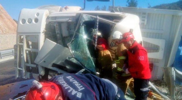 Balıkesir'in Havran ilçesinde frenleri boşalan kamyon takla attı. Kaza sürücü sıkıştığı yerden 2 buçuk saatlik çalışma sonucu itfaiye tarafından çıkarılabildi.