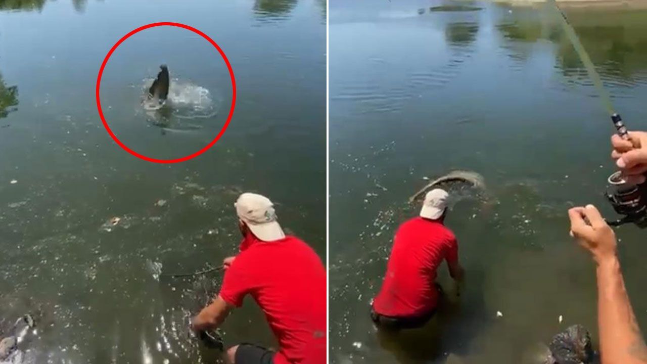 Yayın balığının yakalandığı anlar cep telefonu kamerasıyla kaydedildi. Görüntülerde balığın nehirden çıkarılma sırasında balıkçıların zorlandığı görüldü.