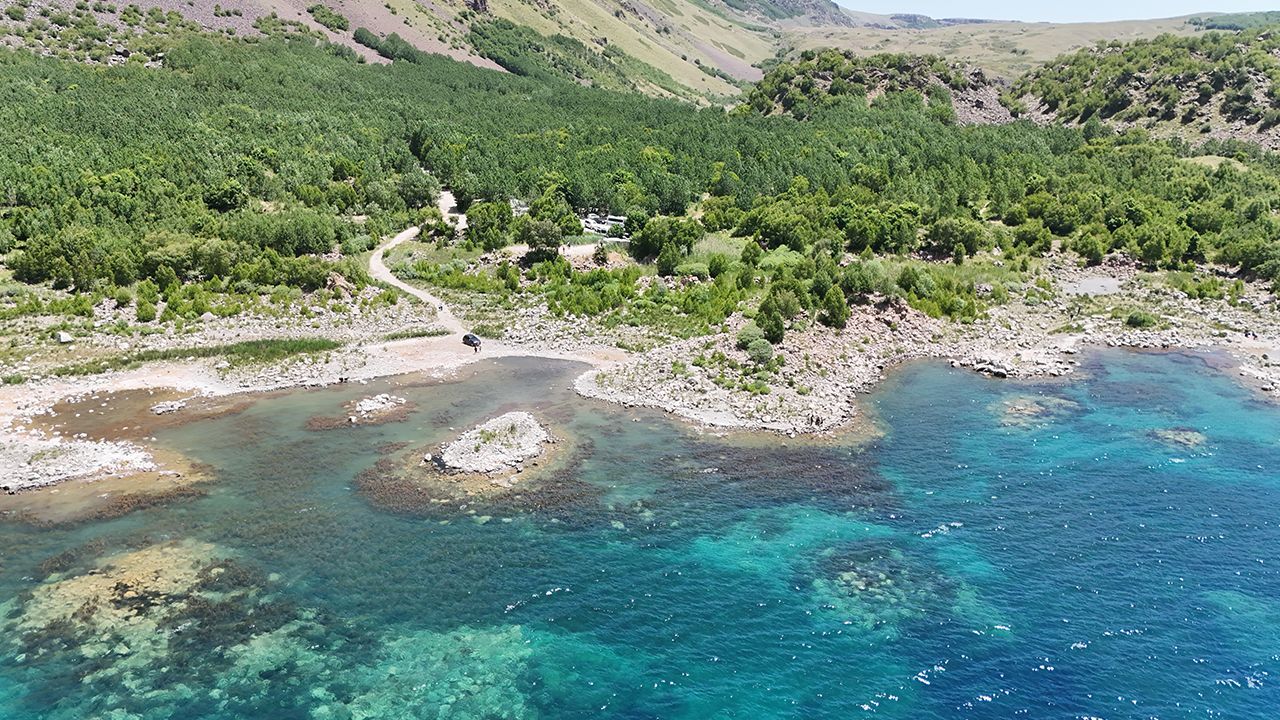 Nemrut Krater Gölü'nün çevresini, ormanlık alanları dronla tarayan jandarma ekipleri, bölgeye gelen yerli ve yabancı ziyaretçilerin kontrollerini yapıyor, bilgilendirmelerde bulunuyor.