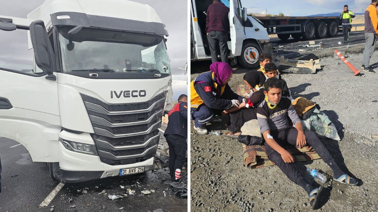 Kazada tır sürücüsü ile minibüsteki 5'i çocuk, 8 kişi olmak üzere toplamda 9 kişi yaralandı. İhbar üzerine bölgeye çok sayıda ambulans ve jandarma ekibi sevk edildi. Jandarma ekipleri yolda güvenlik önlemi alırken, yaralı 9 kişi ambulanslarla çeşitli hastanelere kaldırıldı.