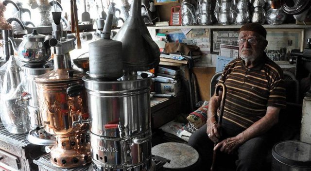 Akarsu, ilçedeki en eski esnaf olduğunu belirterek, "1952’den beri çalışıyorum. Soba borusu, kazanı yaptım. İdare lambaları, sübekler ürettim. Baca bilezikleri yaptım ama artık işe 'Paydos' dedim. Artık yaşlandım. Gözlerimden de ameliyat oldum. Bu nedenle artık üretim yapmıyorum. Şimdiye kadar yaptığım şeyleri yavaş yavaş satıyorum." şeklinde konuştu.