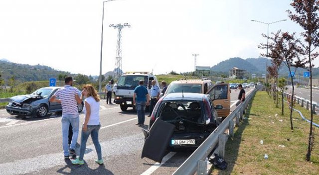 Edinilen bilgiye göre, Samsun istikametinden Ordu'ya giden Haluk Güler idaresindeki 27 ACG 05 plakalı otomobil, Yunus Emre Tüneli'ni çıktıktan sonra sol şeritten sağ şeride geçtiği anda önündeki Nihal Yeşilpınar yönetimindeki 34 BM 2910 plakalı otomobile çarptı. Çarpmanın etkisiyle sol şeride geçen araç bu defa İbrahim Şenel Bilgin idaresindeki 52 DE 454 plakalı otomobille kafa kafaya çarpıştı. Kazada araçlarda bulunan 10 kişi hafif şekilde yaralandı. Yaralılar, 112 Acil Servis ekiplerince Ünye Devlet Hastanesi'ne kaldırılırken, kazayla ilgili soruşturma başlatıldı.