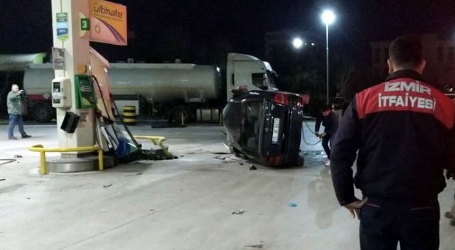 Alınan bilgiye göre, B.G. idaresindeki 35 AF 6673 plakalı otomobil, Anadolu Caddesi Balatçık Mezarlığı yakınlarında kontrolden çıkarak önce kaldırma, ardından takla atarak yol kenarındaki akaryakıt istasyonuna çarptı.