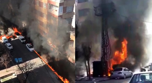 Şanlıurfa'da patlayan elektrik trafosundan düşen kıvılcımlar araçların yanmasına neden oldu.