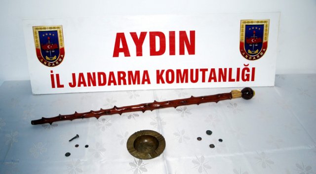 Aydın’ın Söke ilçesinde, jandarma ekipleri tarafından şüphe üzerine durdurulan üç şüphelinin üzerinde tarihi eser ele geçirildi.